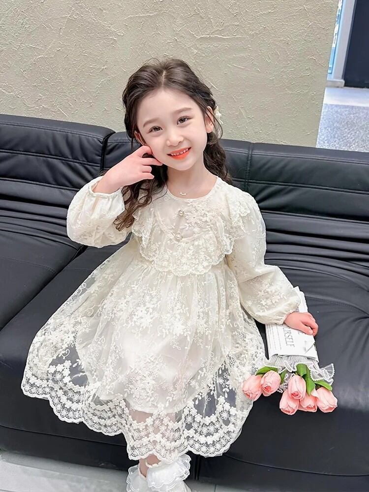 2024年春の新作ガールズロングドレス、プリンセススカート、小さな子供、ベビーガールズ向けのおしゃれな春秋ドレス