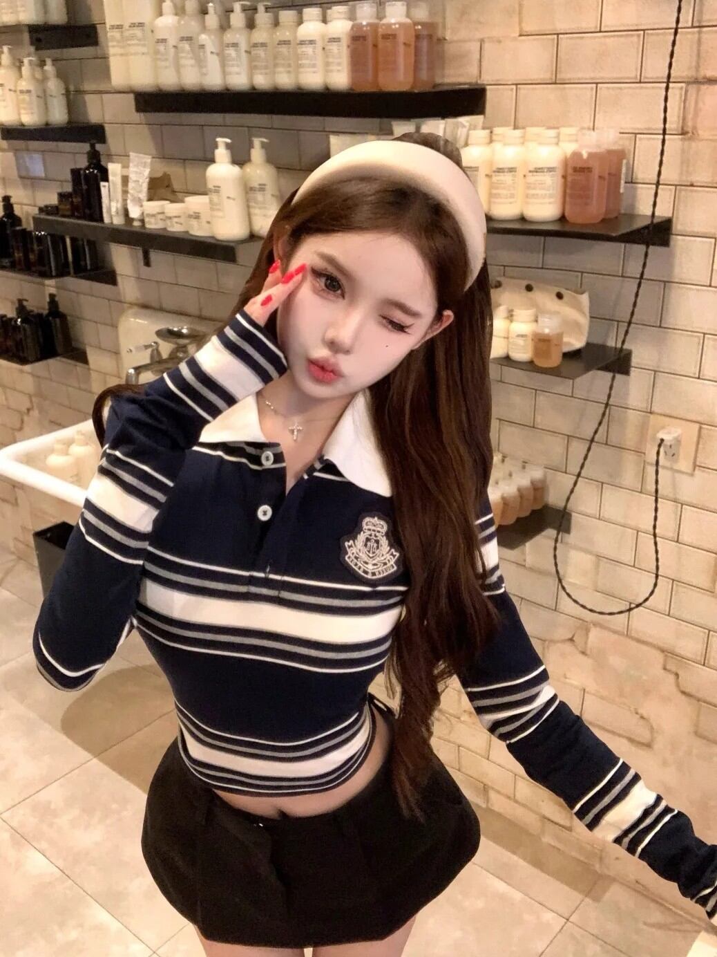 海軍風長袖ストライプTシャツ レディース 秋冬 Pure Desire Spicy Girl ベースレイヤーシャツ インナーポロシャツ
