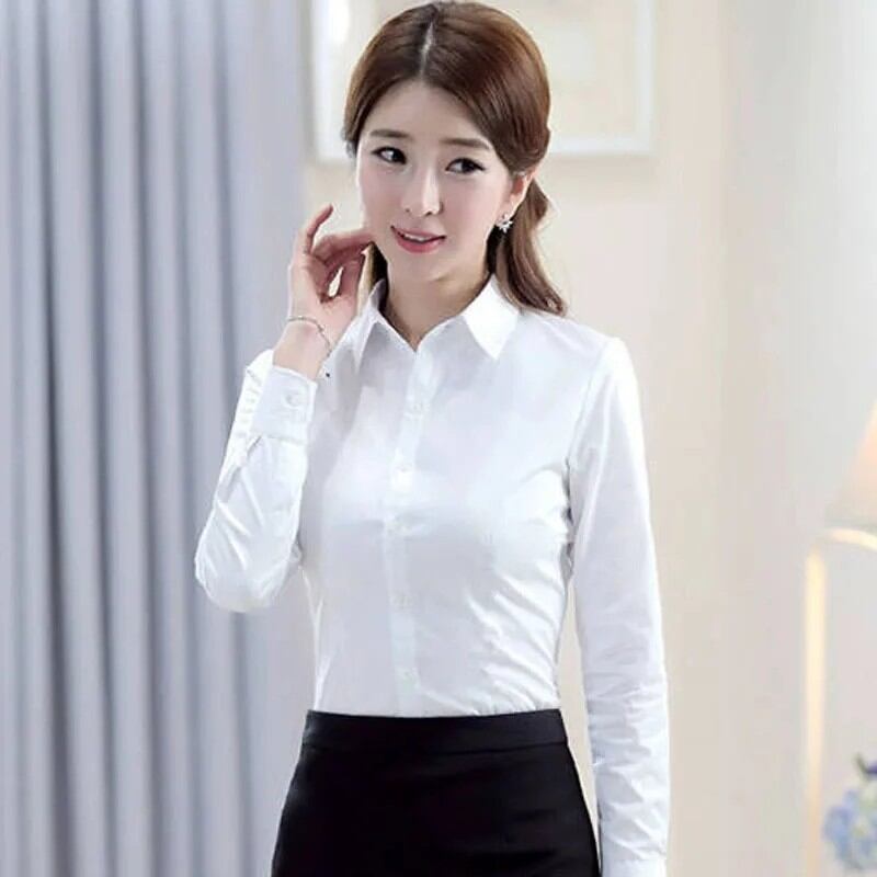 春秋の女性の白シャツファッション長袖プロフェッショナルフォーマルオフィスレディシャツトップス韓国ラペルボタン OL ブラウス