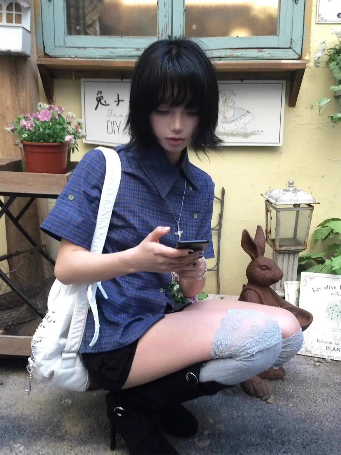 ヴィンテージチェック柄カジュアルシャツ女性半袖 Y2k トップス日本 2000 年代サマーシャツ不規則なアメリカンレトロ 90 年代 Tシャツ