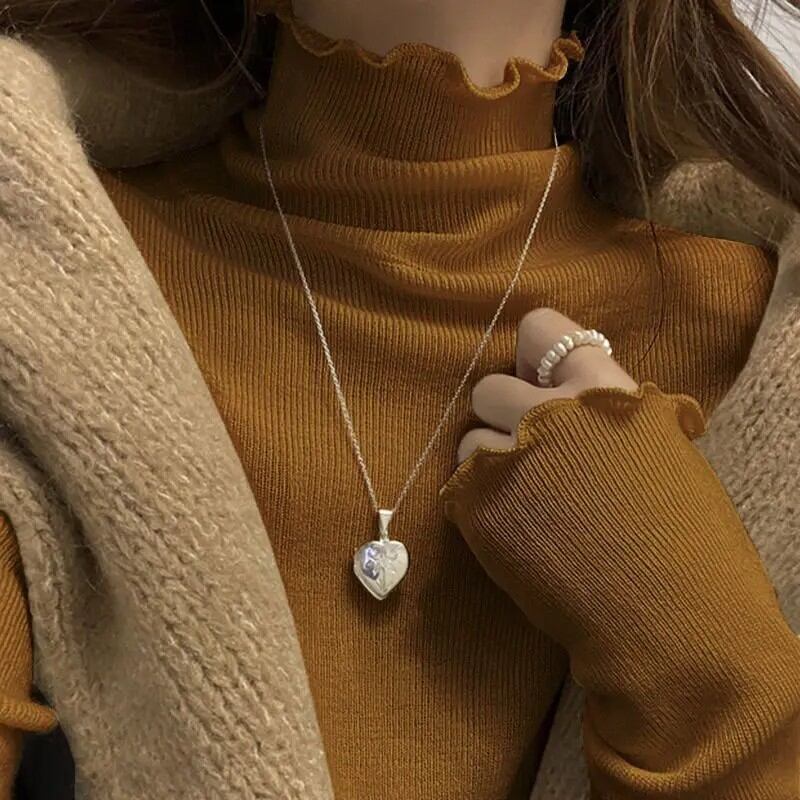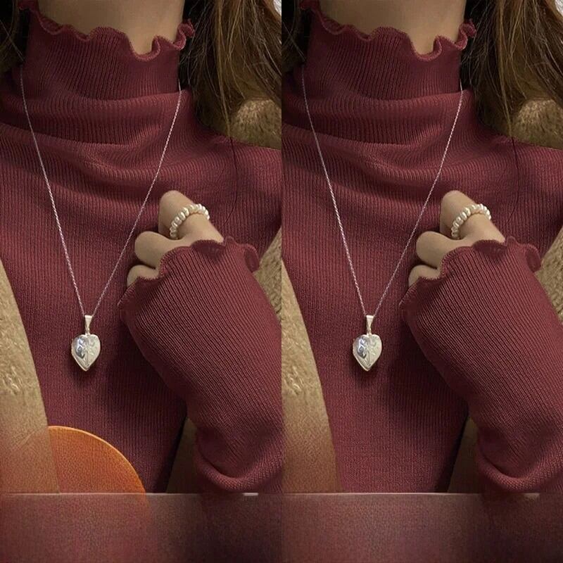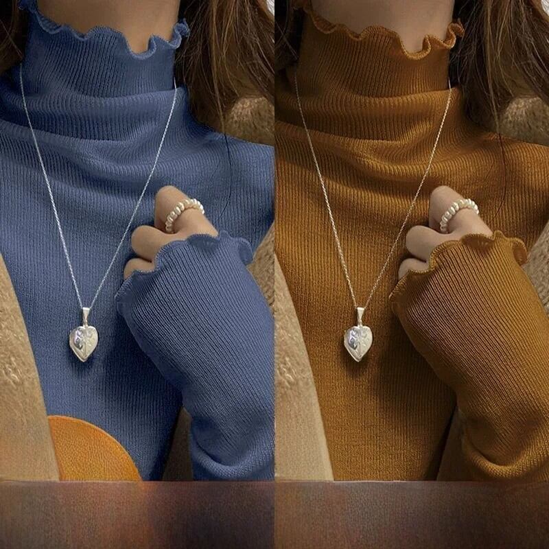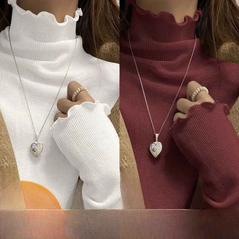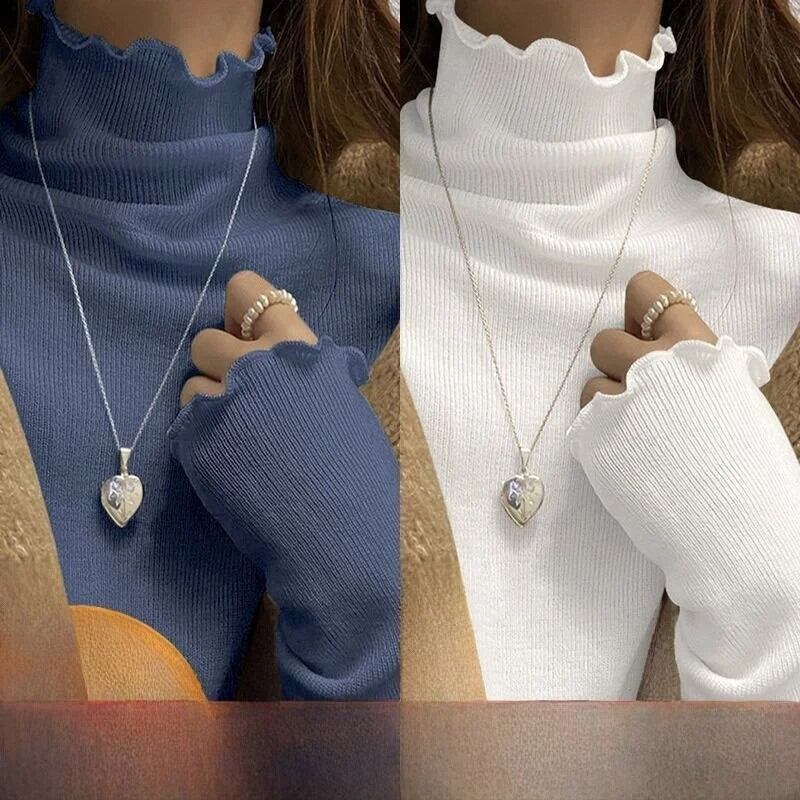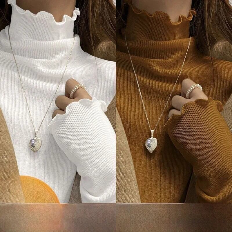 女性の長袖ハーフハイカラー Tシャツ暖かいインナーウェア学生リブベースシャツ木製エッジ秋冬ファッション
