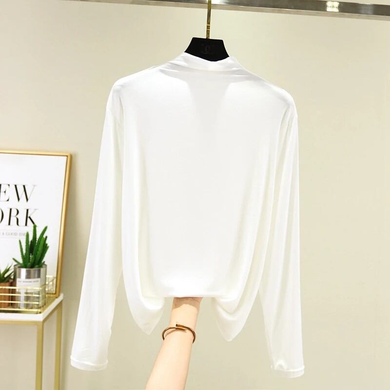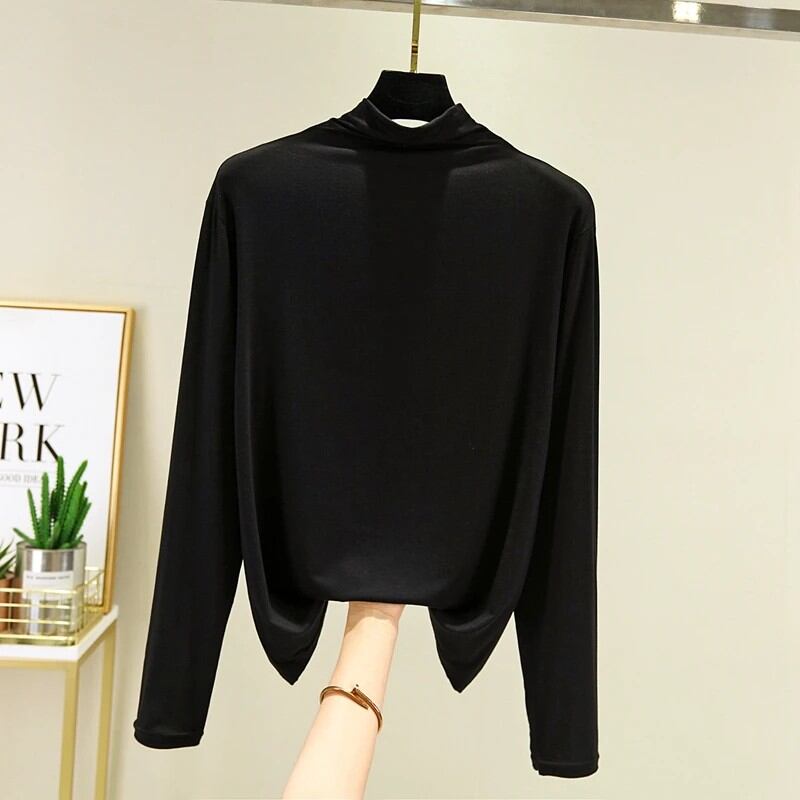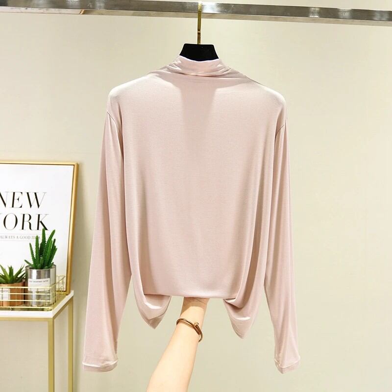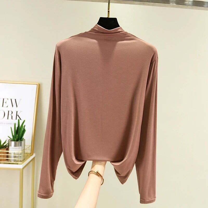 春秋モーダルレディースハーフハイカラー長袖ベースシャツ薄手大きいサイズトップスシンプルスタイル韓国版
